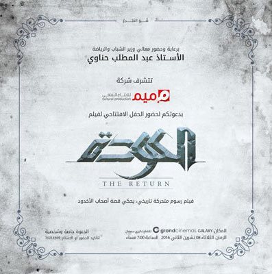 بر اساس اطلاع شرکت آیات مدیا (پخش کننده فیلم)، افتتاحیه نسخه عربی فیلم سینمایی پویانمایی «فهرست مقدس» با نام عربی «العودة» از ساعت 19 روز 10 نوامبر قرار است در Galaxy Ground cinemas شهر بیروت آغاز شود، «عبدالمطلب حناوی» وزیر ورزش و جوانان کشور لبنان نیز در این مراسم حضور خواهد داشت.