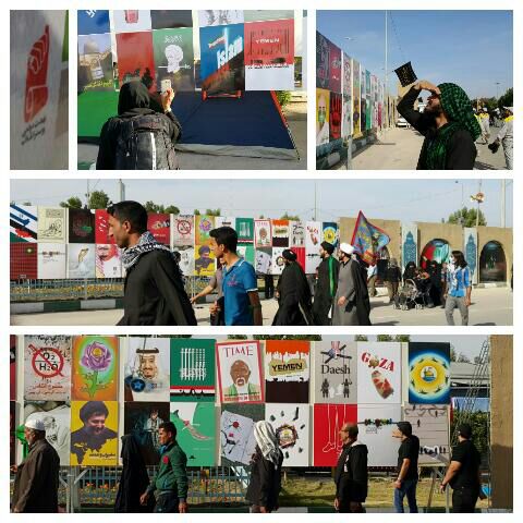 این نمایشگاه با حدود 179 اثر از طراحان نهضت مردمی پوستر انقلاب به زبان های عربی و انگلیسی در میدان ثورة العشرین نجف اشراف روبروی مسجد شاکری در معرض دید زائرین اربعین حسینی قرار گرفته است.