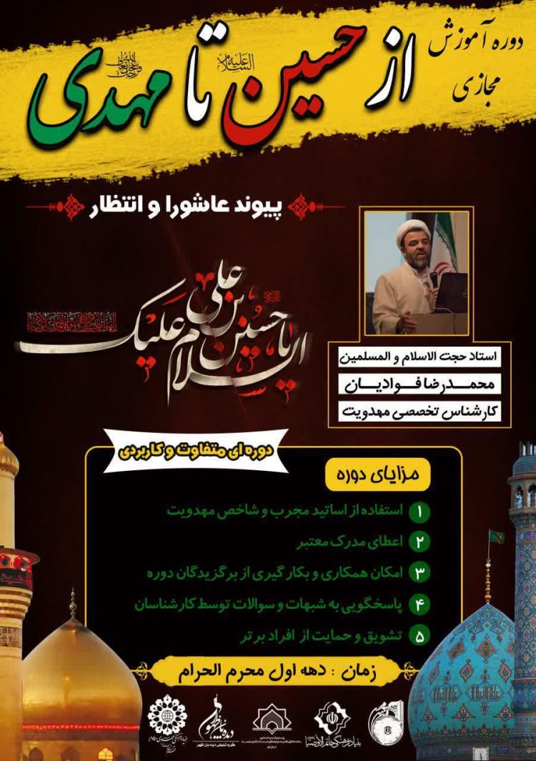 محمودی تصریح کرد: دوره «از حسین(ع) تا مهدی(عج)» با هدف پیوند عاشوار و انتظار در ایام سوگواری اباعبدالله الحسین(ع) با ارائه حجت الاسلام محمدرضا فوادیان کارشناس تخصصی مهدویت برگزار می شود.