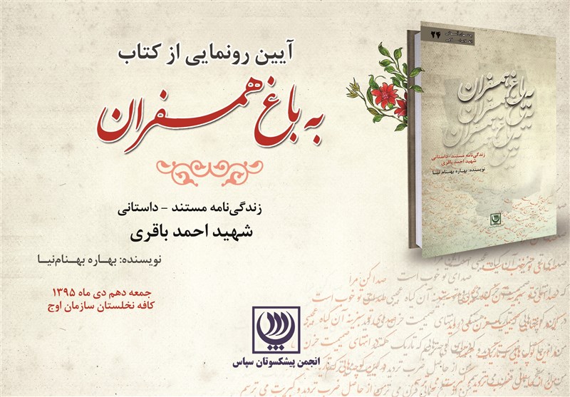 همچنین آیین رونمایی از کتاب «به باغ همسفران» روایت زندگینامه مستند داستانی شهید احمد باقری از سوی انتشارات انجمن پیشکسوتان سپاس در محل کافه نخلستان اوج برگزار میشود.
