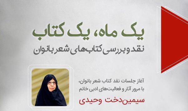 نخستین جلسه از سلسله نشستهای نقد کتاب شعر بانوان ساعت 17 سه شنبه 12 بهمن در حوزه سالن سلمان هراتی حوزه هنری، واقع در خیابان سمیه، نرسیده به پل حافظ برگزار میشود.