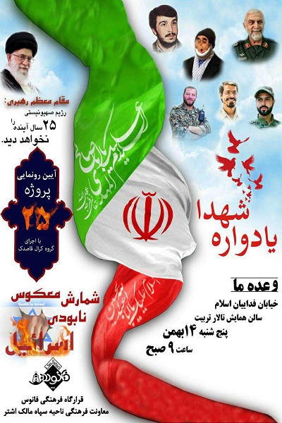 به گزارش سرویس استانهای حلقه وصل، مراسم یادواره شهدای دفاع مقدس و مدافعان حرم همراه با رونمایی از سرود «۲۵» اثری ضدصهیونیستی به زبان عبری، ۱۴ بهمن در مشهد برگزار میشود.