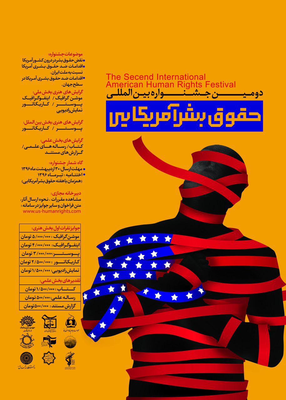سرویس معرفی: با توجه به بیانات مقام معظم رهبری(حفظه الله) در خصوص «افشای حقوق بشر آمریکایی» و نامگذاری هفته دوم تیرماه هر سال به این نام، دبیرخانه پویش مردمی «افشای حقوق بشر آمریکایی» با همکاری موسسات و نهادهای مردمی و در راستای ارتقاء آگاهی ها و فرهنگ عموم مردم ایران و جهان در زمینه حقوق بشر و از طرفی معرفی چهره واقعی مدعیان جهانی حقوق بشر با استفاده از آثار پژوهشی و هنری، «دومین جشنواره بین المللی حقوق بشر آمریکایی» را در سطح ملی و بین المللی با ساختار دبیرخانه مردمی و غیر دولتی برگزار می نماید.