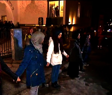 مسلمانان نروژ در اعتراض به اقدامات تروریستی علیه یهودیان در دانمارک و برای اعلام همسبتگی بین مسلمانان و یهودیان، اطراف کنیسهای در اسلو زنجیره انسانی تشکیل میدهند.