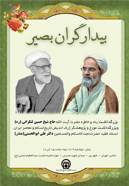 به گزارش حلقه وصل، همایش «بیدارگران بصیر» روز دوشنبه نهم اسفندماه 1395 از ساعت 15 تا 18 در حوزه علمیه حضرت عبدالعظیم(ع) با حضور اقشار مختلف علمی و فرهنگی به ویژه طلاب و دانشجویان برگزار میشود.