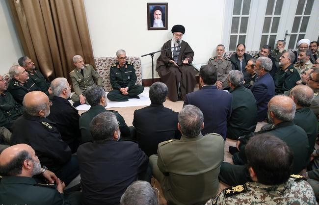 پیش از سخنان فرمانده معظم کل قوا، سرلشکر باقری رییس ستاد کل نیروهای مسلح در گزارشی گفت: عمق بخشی به نفوذ راهبردی انقلاب اسلامی، ارتقای حمایت از جبهه مقاومت و مقابله جدی با تروریستهای تکفیری و حامیان آنها، ایجاد و ارتقای امنیت پایدار، صیانت از آبها و منافع جمهوری اسلامی ایران، تقویت توان و آمادگیهای دفاعی و هجومی و مراقبت و پایش شبانهروزی از آسمان کشور از مهمترین اقدامات و فعالیتهای نیروهای مسلح در سال گذشته بوده است.