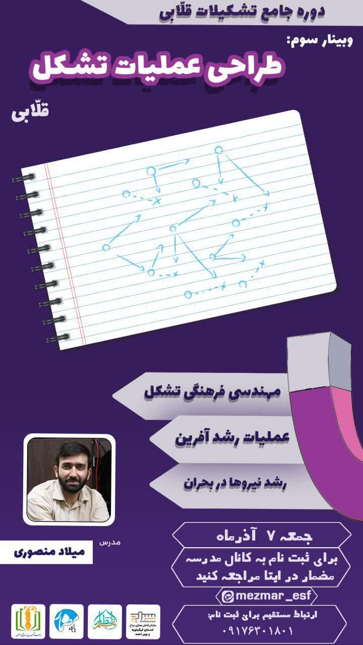 سومین وبینار جمعه هفتم آذرماه با موضوع «طراحی عملیات تشکل قلّابی» با ارائه میلاد منصوری برگزار می شود.