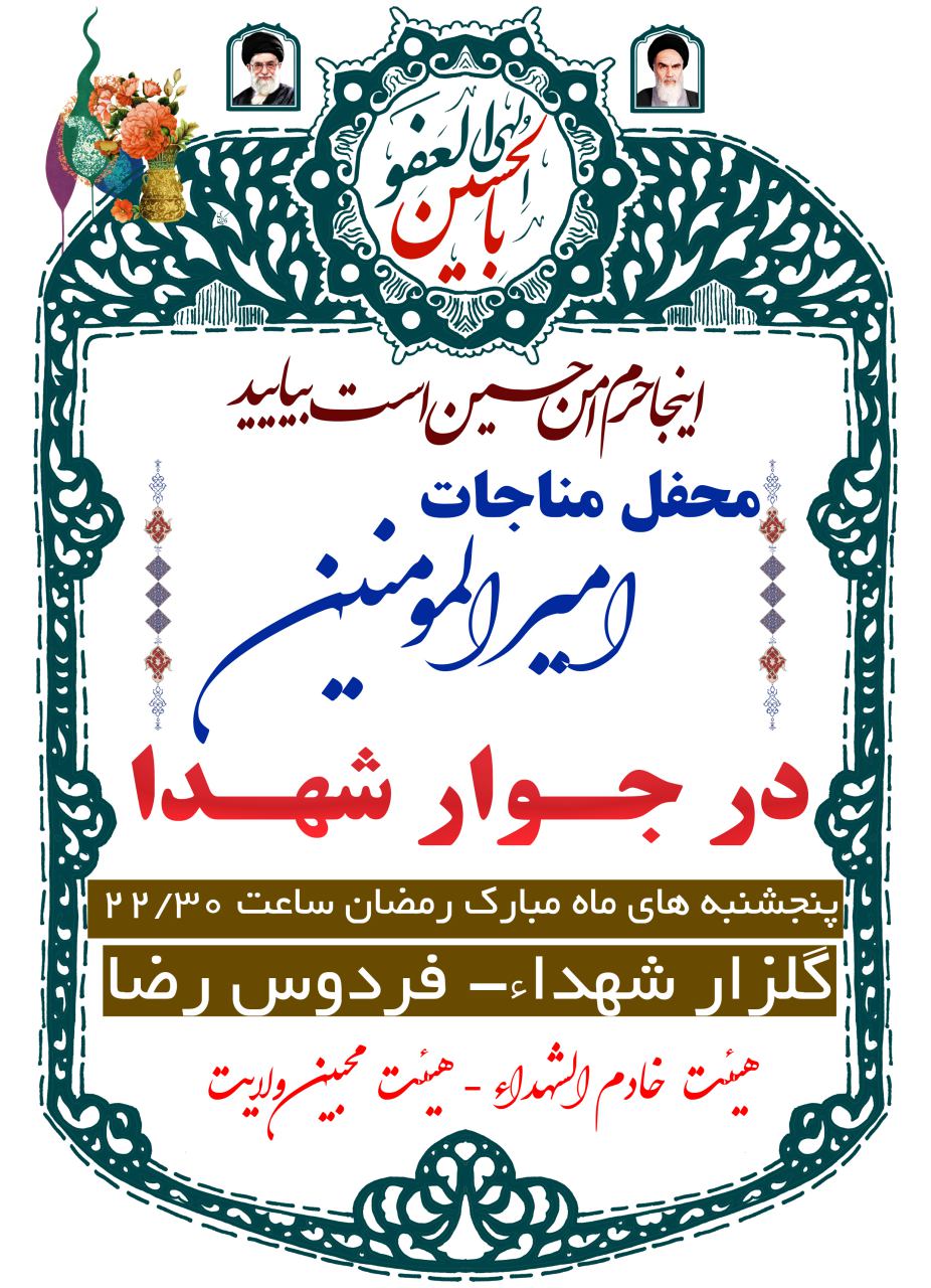 این مراسم به همت دو هیئت انقلابی خادم الشهداء و محبین ولایت پنجشنبه های ماه مبارک رمضان از ساعت 22:30 برگزار می گردد.
