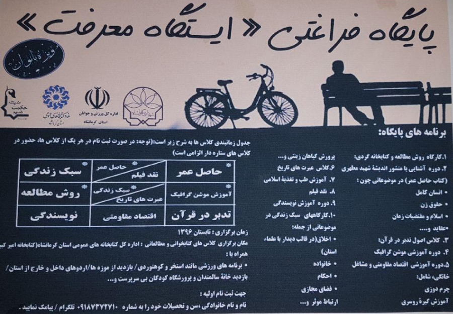سیده نرگس میرعالی، مسئول پایگاه فراغتی «ایستگاه معرفت» در کرمانشاه به حلقه وصل گفت: این پایگاه فراغتی ویژه اوقات فراغت بانوان در ایام تابستان به صورت الگویی راه اندازی شده است.