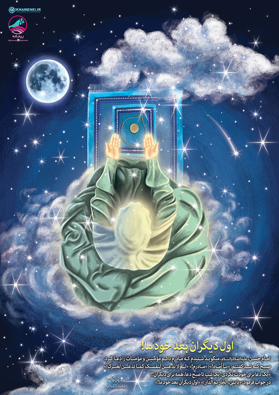 به گزارش حلقه وصل، حضرت آیتالله خامنهای: «امام حسن مجتبی علیهالصّلاةوالسّلام میگوید: شبی -شب جمعهای- مادرم به عبادت ایستاد و تا صبح عبادت کرد. «حتی انفجرت عمود الصبح». تا وقتی که طلوعِ فجر شد. مادر من از سر شب تا صبح مشغول عبادت بود و دعا و تضرّع کرد. امام حسن، علیهالصّلاةوالسّلام، میگوید -طبق روایت- شنیدم که دائم مؤمنین و مؤمنات را دعا کرد؛ مردم را دعا کرد؛ برای مسائل عمومی دنیای اسلام دعا کرد. صبح که شد گفتم: «یا اُمّاه!»؛ «مادرم!» «لِمَ لا تَدعین لِنَفسِک کَما تَدعین لِغَیرک» «یک دعا برای خودت نکردی! یک شب تا صبح دعا، همه برای دیگران!؟» در جواب فرمود: «یا بنىّ، الجّار ثم الدّار» «اوّل دیگران بعد خود ما!» این، آن روحیهی والاست.» ۱۳۷۱/۹/۲۵