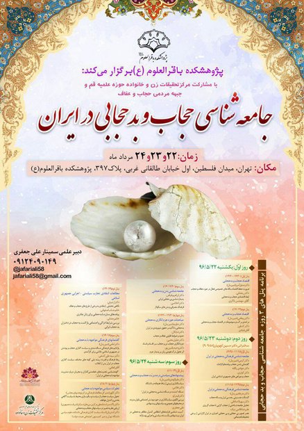 سرویس معرفی: پنل های سمینار ۳روزۀ «جامعه شناسی حجاب و بدحجابی» با همکاری پژوهشکدۀ باقرالعلوم(ع) با مشارکت مرکز تحقیقات زن و خانواده حوزه علمیه و جبهۀ فرهنگی حجاب و عفاف برگزار میشود.