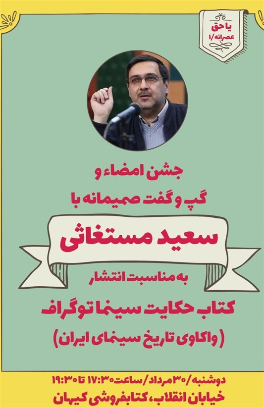 گفتوگو با مستغاثی و جشن امضای «حکایت سینماتوگراف» به مناسبت انتشار این اثر روز دوشنبه، 30 مردادماه، در کتابفروشی کیهان برگزار میشود. علاقهمندان برای شرکت در این نشست میتوانند در ساعت 17:30 به کتابفروشی کیهان واقع در خیابان انقلاب مراجعه کنند.