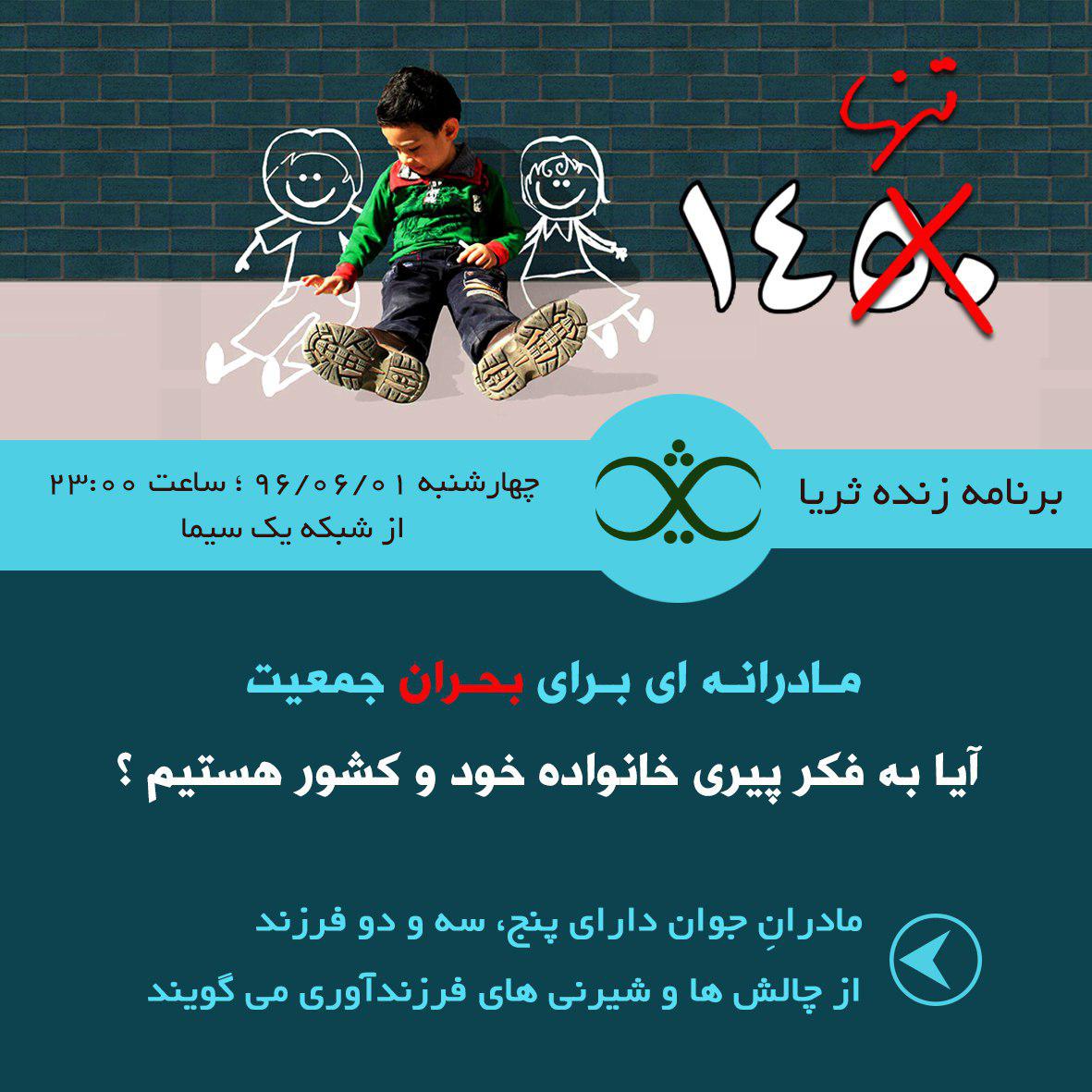 به گزارش حلقه وصل، برنامه ثریا این هفته و در آستانه سالگرد پیوند آسمانی حضرت علی(ع) و حضرت زهرا(س) با موضوع بحران جمعیت و چالشهای فرزندآوری روی آنتن شبکه اول سیما رفت. این برنامه با حضور مرضیه داوری، مادر سه فرزند و مدرس دانشگاه الزهرا(س) و نجمه محمدی، مادر دو فرزند و پژوهشگر حوزه جمعیت و حسین مروتی، پژوهشگر حوزه جمعیت پخش شد. همچنین اردبیلی، مادر ۵ فرزند، پزشک و استاد دانشگاه به صورت تلفنی میهمان این برنامه بودند.