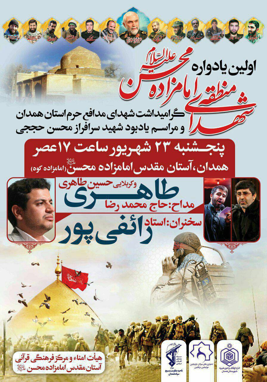به گزارش سرویس استان های حلقه وصل، اولین یادواره شهدای منطقه امامزاده محسن(ع) و گرامیداشت شهدای مدافع حرم استان همدان برگزار می گردد.