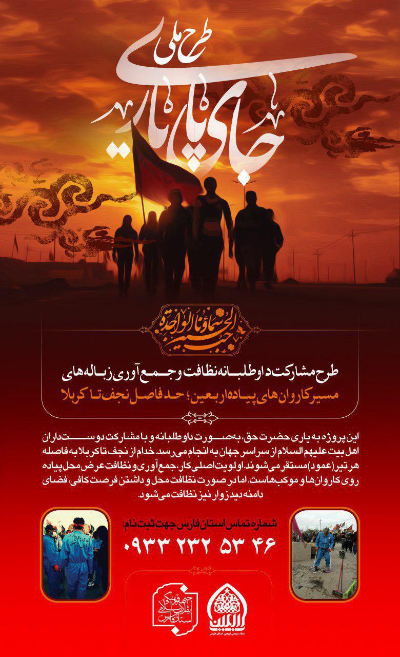 یادآور می شود، طرح «جای پای یار» طرحی مردمی و داوطلبانه است که توسط جمعی از جوانان یزدی پایهگذاری شده است. در این حرکت خودجوش داوطلبان در 10 روز پایانی پیادهروی اربعین حسینی اقدام به نظافت مسیر پیادهروی کرده و زبالههای مسیر را جمع آوری میکنند.