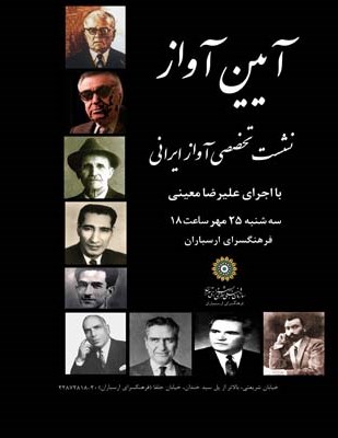 در پایان نیز مجری برنامه علیرضا معینی اعلام کرد که پانزدهمین نشست آیین آواز از ساعت 18 سه شنبه 30 آبان در فرهنگسرای ارسباران برگزار خواهد شد.