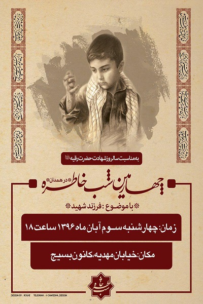 به گزارش سرویس استان های حلقه وصل، همزمان با سالروز شهادت حضرت رقیه(س) چهارمین شب خاطره در همدان برگزار می شود.