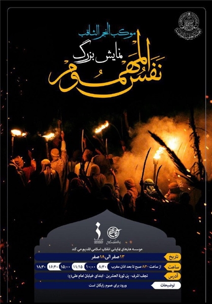 محل برگزاری نمایش میدانی «نفس المهموم» شهر نجف زیر پل ثوره العشرین، ابتدای خیابان امام علی(ع)، موکب «نجم الثاقب» است.