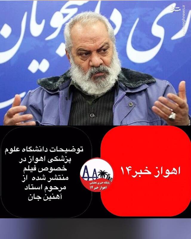 به گزارش حلقه وصل، صفحه اینستاگرام اهواز خبر توضیحات دانشگاه علوم پزشکی اهواز در خصوص فیلم منتشر شده از مرحوم استاد آهنین جان را منتشر کرد. دکتر مردانی مشاور رییس دانشگاه علوم پزشکی اهواز: فیلمی که از استاد مرحوم آهنین جان منتشر شده مربوط به ۲۰ روز قبل است که ایشان بعد از حضور در بیمارستان و بهبودی نسبی درخواست بازگشت به منزل نمودند.