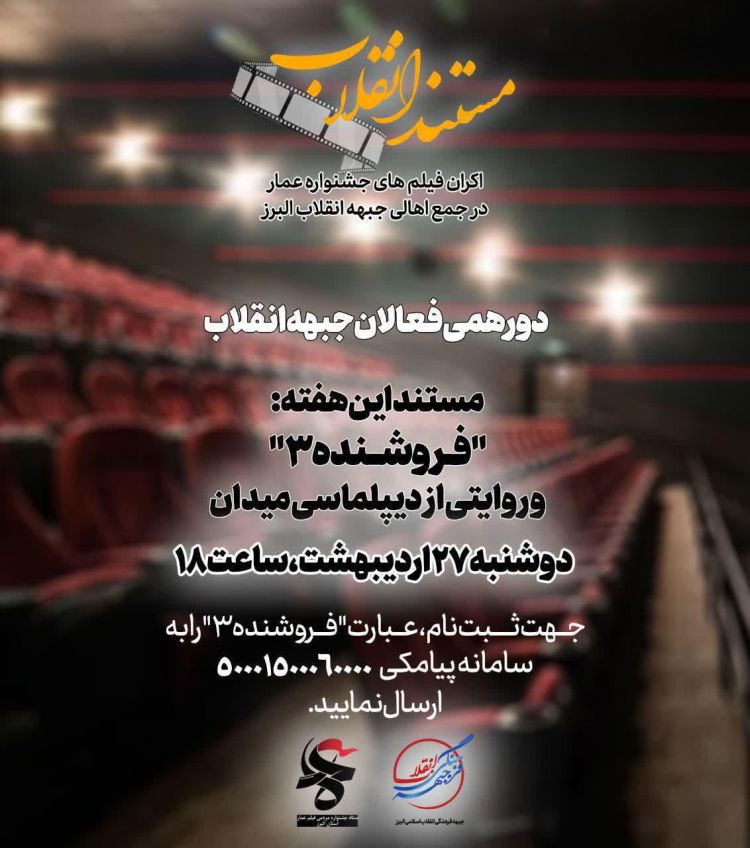 در نشست امروز دوشنبه 27 اردیبهشت ماه نیز مستند «فروشنده3» روایتی از دیپلماسی میدان اکران می گردد.