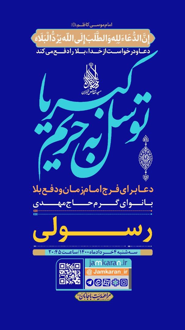 امروز سهشنبه چهارم خردادماه مراسم قرائت دعای توسل با عنوان «توسل به حریم کبریا» با نوای مهدی رسولی برگزار خواهد شد.