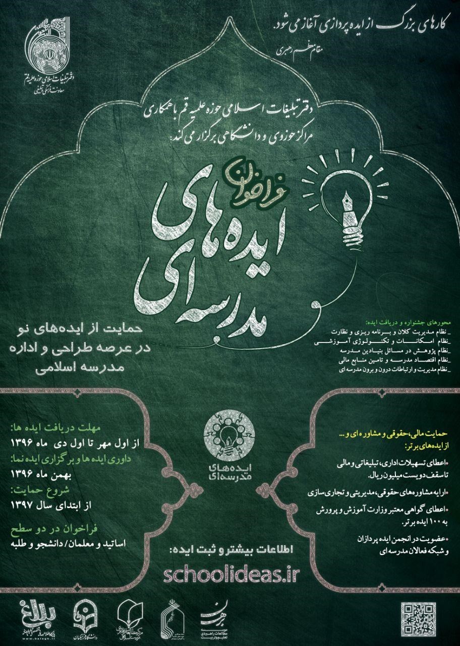 به گزارش حلقه وصل، دفتر تبلیغات اسلامی حوزه علمیه قم با همکاری مراکز حوزوی و دانشگاهی فراخوان ایدههای مدرسهای را در حمایت از ایدههای نو در عرصه طراحی و اداره مدرسه اسلامی منتشر کرد.