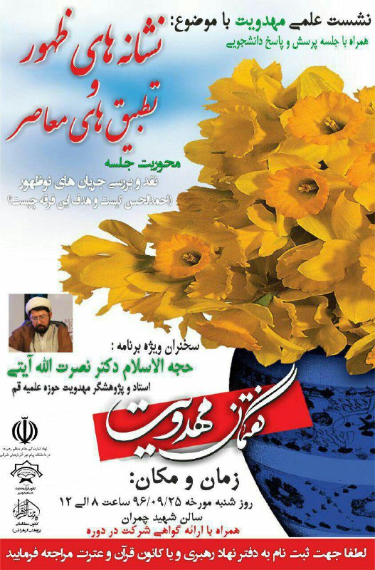 در این برنامه که همراه با پرسش و پاسخ دانشجویی است حجت الاسلام دکتر نصرت الله آیتی استاد و پژوهشگر مهدویت سخنرانی خواهند کرد.