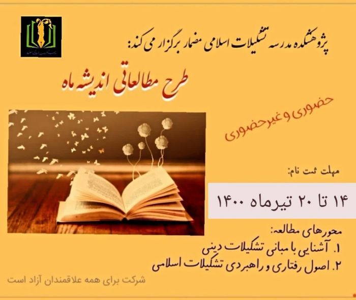 به گزارش حلقه وصل؛ پژوهشکده مدرسه تشکیلات اسلامی مضمار طرح مطالعاتی اندیشه ماه، با محوریت کتاب طرح کلی اندیشه اسلامی مقام معظم رهبری (مدظله) را برگزار مینماید.