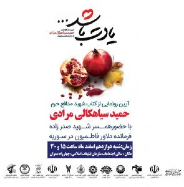 این کتاب که به روایت همسر این شهید بزرگواراست با حضور همسر شهید صدرزاده، فرمانده دلاور فاطمیون در سوریه از ساعت ۱۵:۳۰ در سازمان تبلیغات واقع در چهارراه عمران رونمایی می گردد.