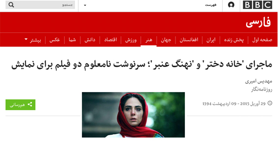 رادیو فردا همچنین در گزارش خود آورده است: « پروژه ممانعت از اکران برخی آثار سینمایی در سال ۹۴، با انتشار اخباری مبنی بر تحریم نمایش فیلم سینمایی «خانه دختر» توسط سینماهای زیرمجموعه حوزه هنری و شهرداری تهران کلید خورده است. بحث تحریم فیلمهای سینمایی از سوی برخی نهادهای صاحب سینما در ایران، از سال ۹۱ و با جلوگیری از اکران تعدادی از آثار سینمایی دارای پروانه نمایش از سوی حوزه هنری و شهرداری تهران آغاز شد. این رویه اما در نیمه دوم سال ۹۲ و سال ۹۳ تداوم نیافت و فیلمهایی که فرصت اکران عمومی پیدا کردند، در همه سینماهای ایران و ظرفیت نمایشی آنها، روی پرده رفتند».