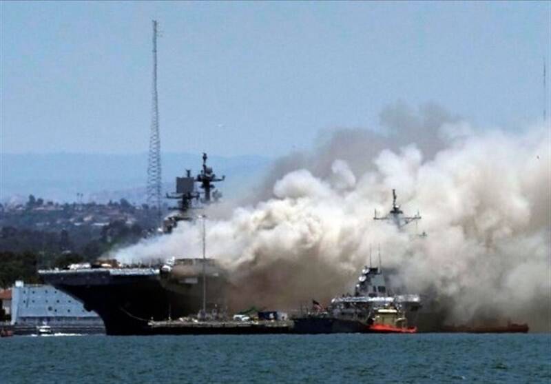 نیروی دریایی آمریکا نگفته است که آیا این ملوان در خصوص آتش سوزی عمدی این ناو جنگی متهم شده است یا نه.