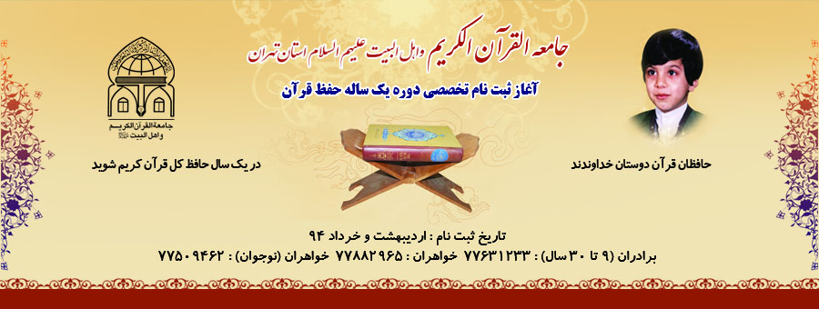 به گزارش حلقه وصل، جامعه القرآن الکریم اهل بیت(ع) با آغاز ثبت نام دوره هایی با نام «حفظ قرآن کریم در یک سال» با شعار «حافظان قرآن دوستان خداوندند» اقدام به برگزاری کلاسهای حفظ قرآن نموده است.