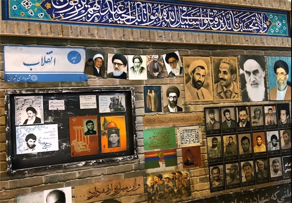 براساس این گزارش، «دیوار انقلاب» دارای دو نمای داخلی و بیرونی است؛ نمای بیرونی آن تحت عنوان "کوچه انقلاب"، با تصاویری از امام خمینی، مقام معظم رهبری و دیگر مبارزان انقلابی همچون آیتالله بهشتی، شهید مطهری، شهید باهنر، آیتالله طالقانی، آیتالله هاشمی رفسنجانی و ... تزئین شده است. بر روی این دیوار همچنین تصاویری از شهدای ٨ سال جنگ تحمیلی و شهدای مدافع حرم نیز دیده میشود.