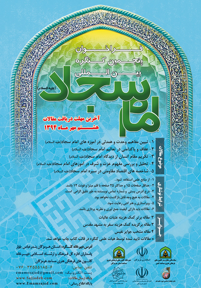وی افزود: آخرین مهلت ارسال مقالات 8 مهر ماه سال جاری ست و شرکت کنندگان باید آثار خود را به یارانامه emamesajad@gmail.com ارسال کنند.