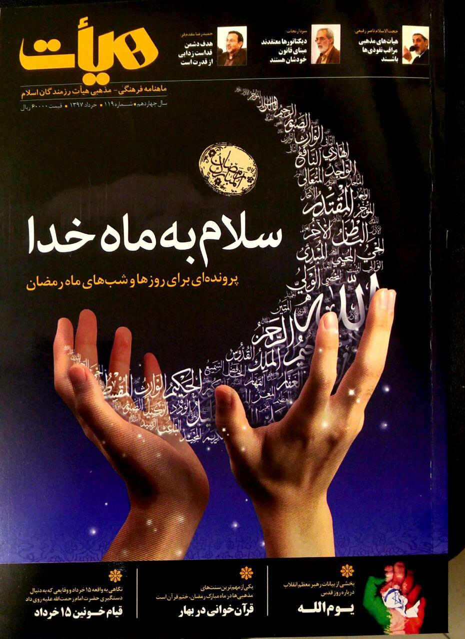 «همراه با خاطرات بزرگمردی که همه لحظههای عمرش درس زندگی است» یکی از عناوین شماره ۱۱۹ ماهنامه «هیأت» برای سالگرد ارتحال بنیانگذار جمهوری اسلامی است. این نشریه همچنین سالگرد وفات حضرت خدیجه سلامالله علیها را با انتشار مطلبی با عنوان «بانویی که با ثروت و رشادتش اسلام را حیات بخشید» گرامی داشته است.