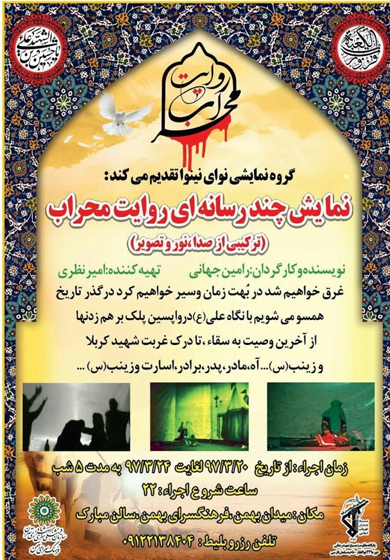 نمایش چند رسانهای «روایت محراب» نگاهی متفاوت به آخرین لحظات زندگی و ضربت خوردن حضرت امام علی(ع) و وصیتهای ایشان به فرزندانشان (امام حسن(ع)، امام حسین(ع)، حضرت زینب(س) و حضرت عباس(ع)) و همچینین پیشبینی امام اول شیعیان در مورد حماسه عظیم کربلا است.