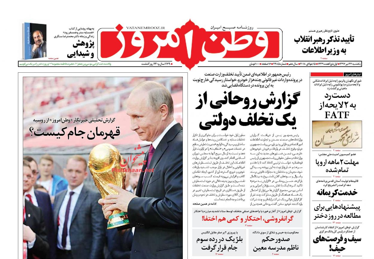 به گزارش حلقه وصل، تیتر نیم صفحه نخست روزنامههای سیاسی یکشنبه ۲۴ تیر ۹۷ به مسائل مهم روز سیاست پرداخته است.