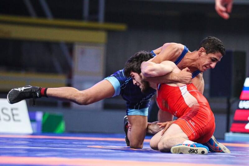 در وزن ۶۱ کیلوگرم رحمان عموزاد در کشتی نخست با نتیجه ۵ بر صفر گمزاتگادزی هالیدوف از مجارستان را شکست داد. دارنده طلای جوانان و نوجوانان جهان در دور دوم به مصاف برنده کشتی میان توشیهیرو هاسگاوا از ژاپن و نیکو مگرلی از آلمان میرود.