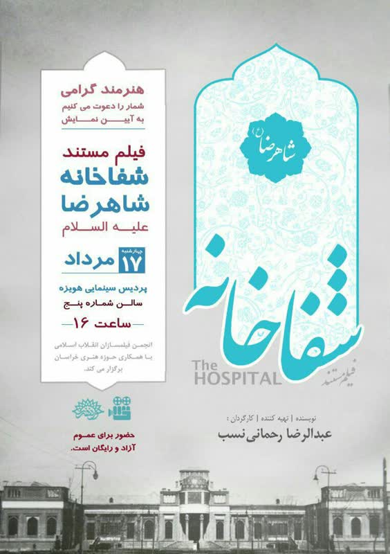 به گزارش سرویس استان های حلقه وصل، فیلم مستند «شفاخانه شاهرضا» در مشهدمقدس اکران می شود.
