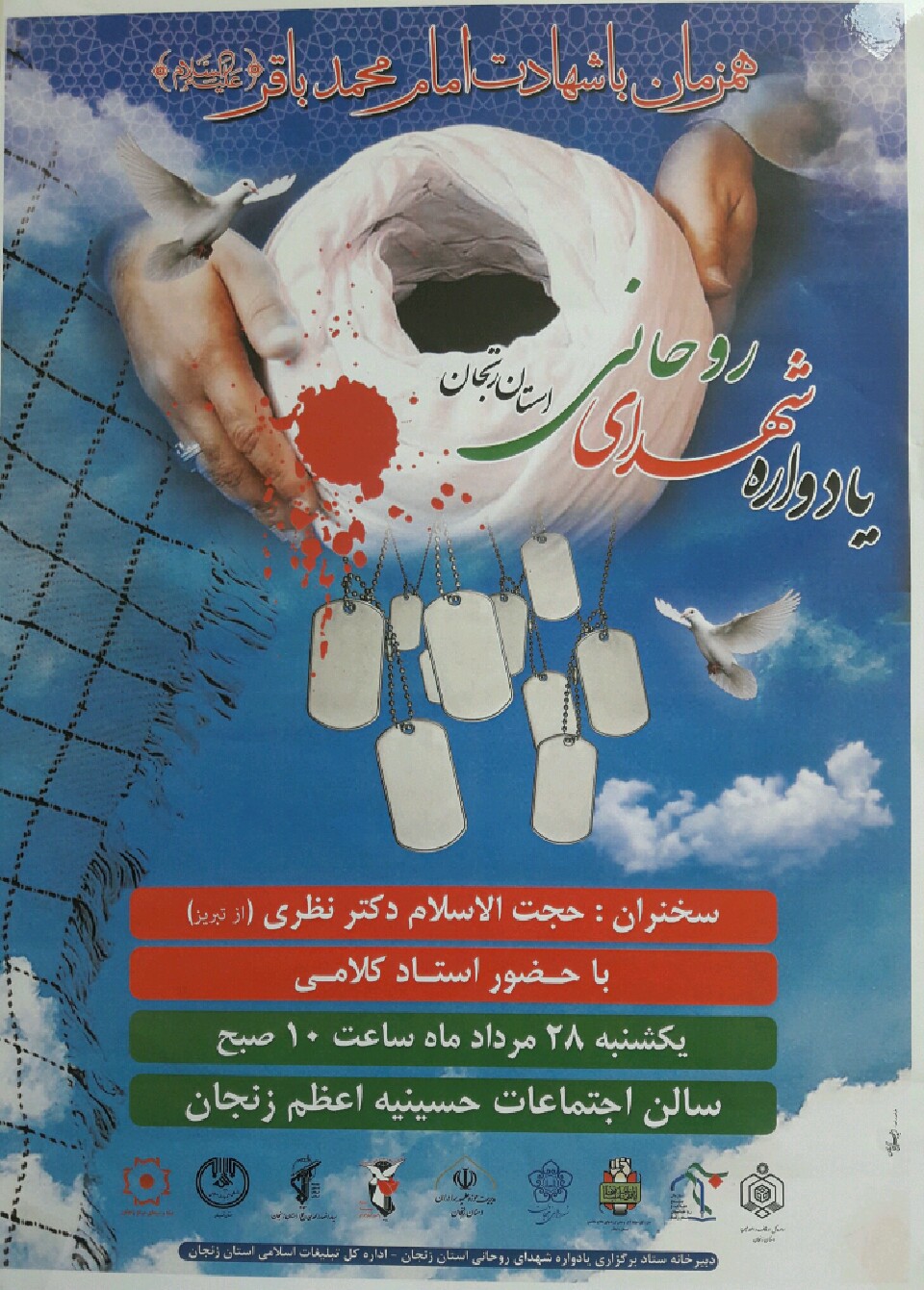 این یادواره که به همت بنیاد شهید و امور ایثارگران استان زنجان با همکاری سپاه انصارالمهدی(عج)، تشکل های دینی قرآنی شهرستان زنجان و حسینیه اعظم برگزار می شود با نوای استاد کلامی همراه است.
