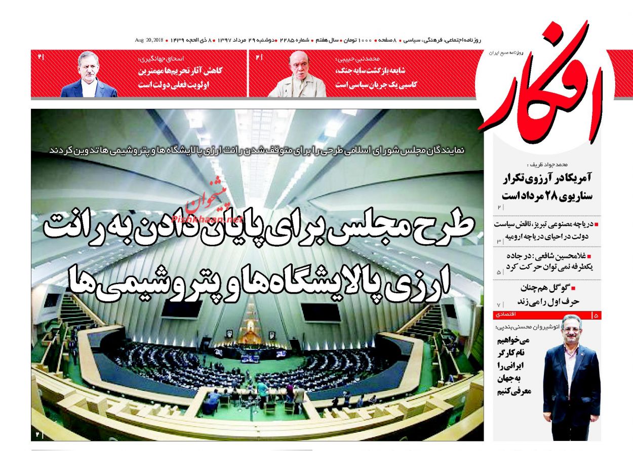 به گزارش حلقه وصل، تیتر نیم صفحه نخست روزنامههای سیاسی دوشنبه ۲۹ مرداد ۹۷ به مسائل مهم روز سیاست پرداخته است.