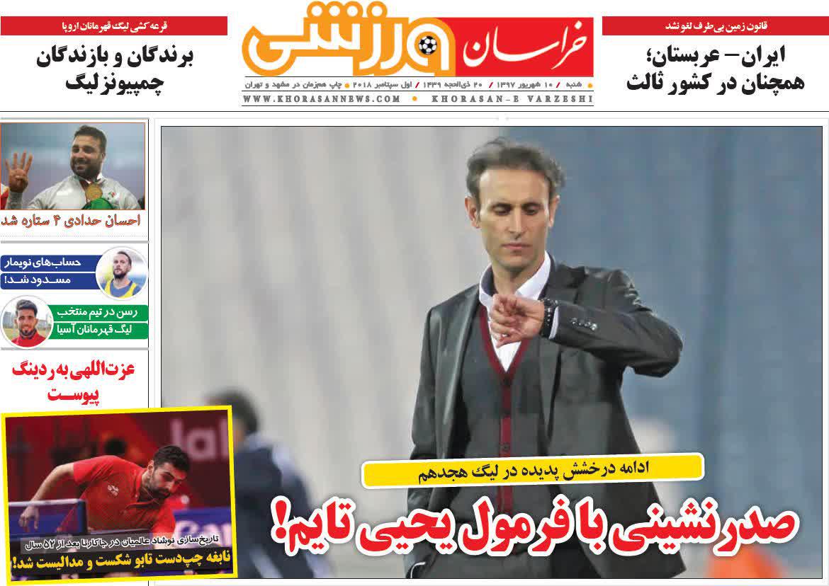 تیتر نیم صفحه نخست روزنامههای ورزشی شنبه ۱۰ شهریور ۹۷ به مسائل مهم روز ورزش از جمله فوتبال پرداخته است.