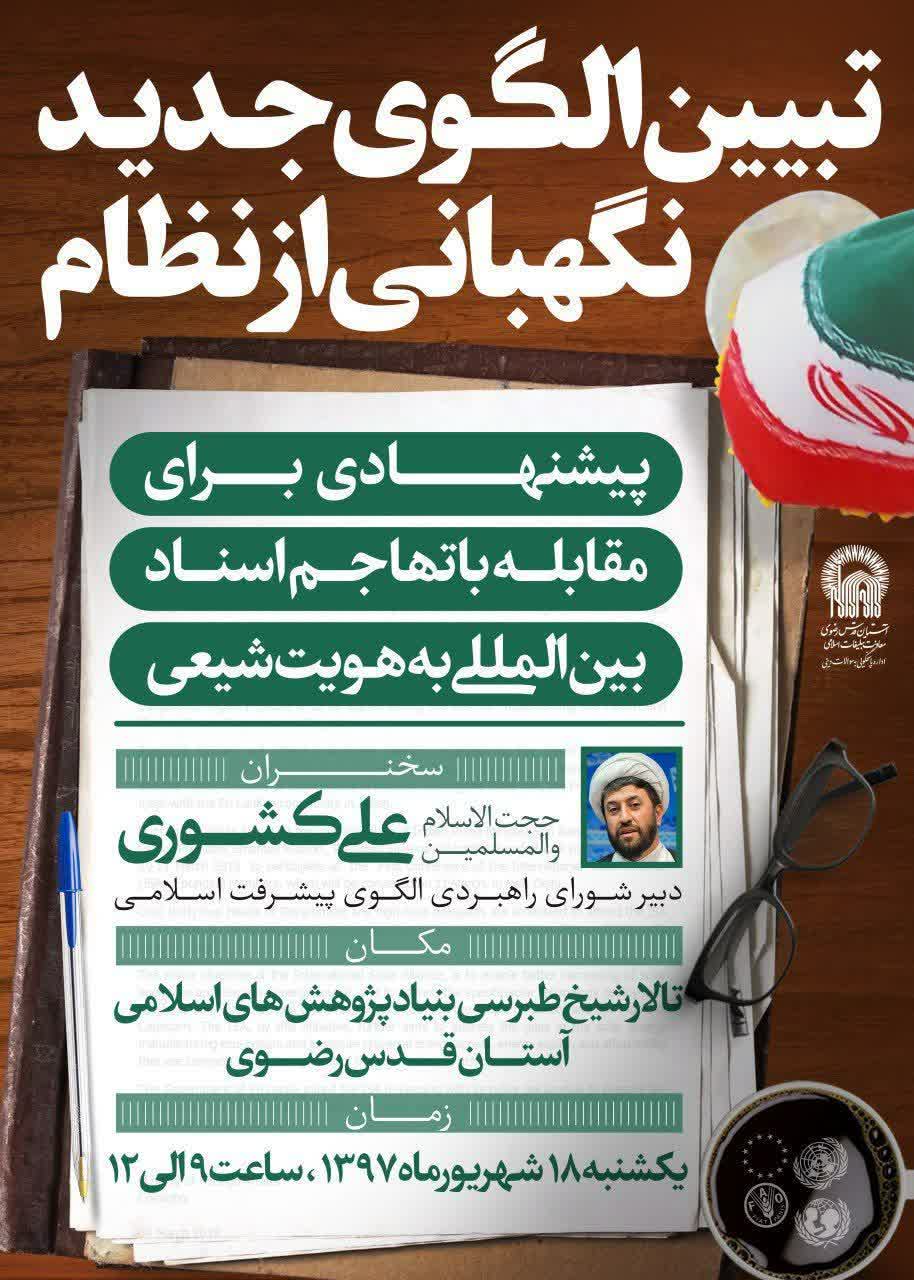این نشست با موضوع پیشنهادی برای مقابله با تهاجم اسناد بین المللی به هویت شیعی برگزار می گردد.