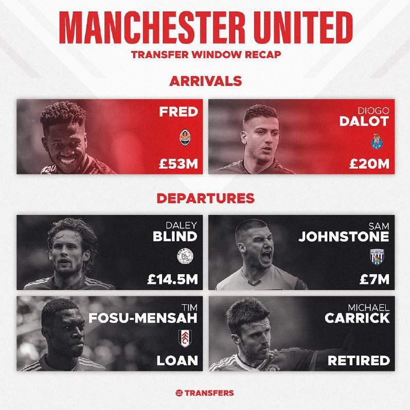 در همین راستا در فصل جاری این تیم تنها دیگو دالوت را از پورتو در ازای 20 میلیون پوند و فرد را در ازای 53 میلیون پوند به خدمت گرفت و بلیند را به آژاکس،یوهانسون را به وستبروم،و منشا را به صورت قرضی به فولهام منتقل کرد.البته مایکل کریک هم با بازنشستگی به جمع دستیاران مورینیو پیوست.