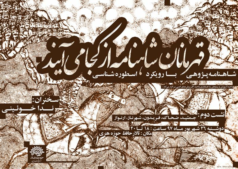 این نشست با عنوان «قهرمانان شاهنامه از کجا می آیند» با رویکرد اسطوره شناسی برگزار می گردد.