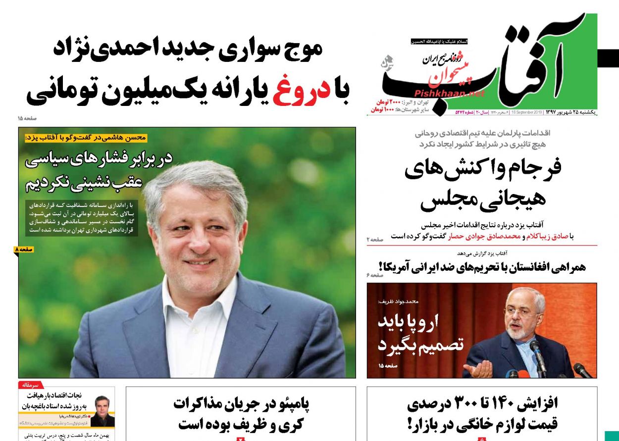 تیتر نیم صفحه نخست روزنامههای سیاسی یکشنبه ۲۵ شهریور ۹۷ به مسائل مهم روز سیاست پرداخته است.