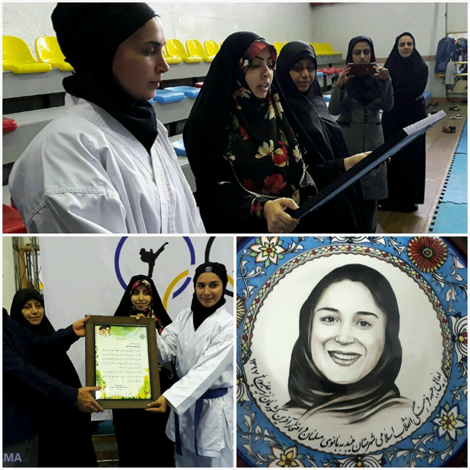 هدایای ارسال شده از طرف جبهه فرهنگی میبد، در اردوی تیم ملی کاراته بانوان که در رشت برگزار می شود، طی مراسمی به رزیتا علیپور، نائب قهرمان کاراته آسیا، تحویل داده شد.