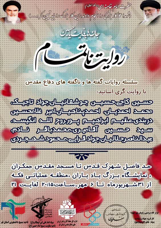 به گزارش سرویس استان های حلقه وصل، ویژه برنامه ی سلسله روایت های گفته ها و ناگفته های دفاع مقدس با عنوان «روایت ناتمام» در قم برگزار می شود.