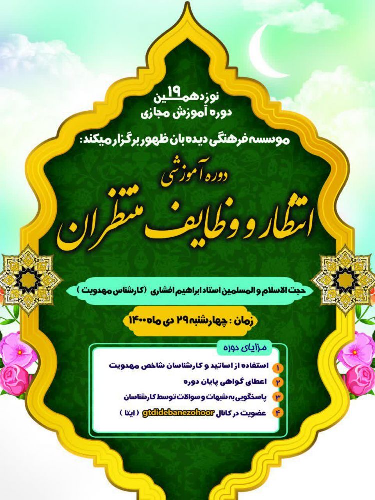 وی بیان داشت: این دوره با عنوان «انتظار و وظایف منتطران» از امروز چهارشنبه 29 دی ماه آغاز می شود.