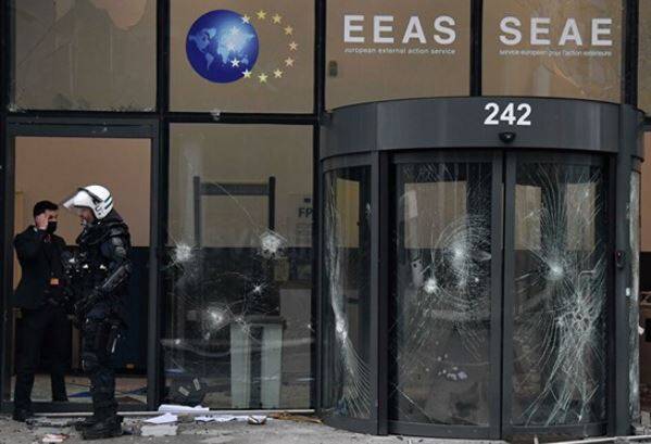 به دنبال این حادثه «جوزپ بورل» مسئول سیاست خارجی اتحادیه اروپا در توییتی با محکوم کردن این اقدام نوشت، تخریب و خشونت بیمعنا در تظاهرات امروز در بروکسل را به شدت محکوم میکنیم.